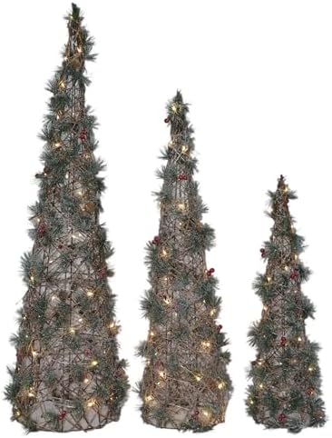 Seasonal LLC Cone Trees with Greenery - Set of 3
