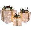 Seasonal LLC Christmas White Glitter Giftbox Pre-Lit Set of 3 | LED Lights are Energy-efficient and Long Lasting | Indoor or Outdoor Display