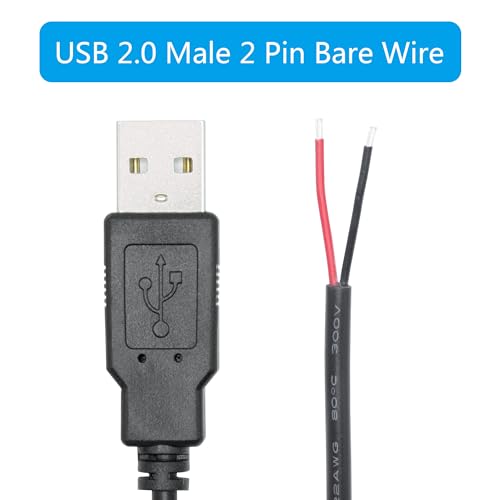 - 【DIY 2Pin Bare Wire】USB A Male plug 2 pin bare wire, 1 end of USB A 2.0 male plug, and the other end of 2 pin open end bare wire, used for 5V/3A usb equipment lnstalled or DIY replacement maintenance power cable.