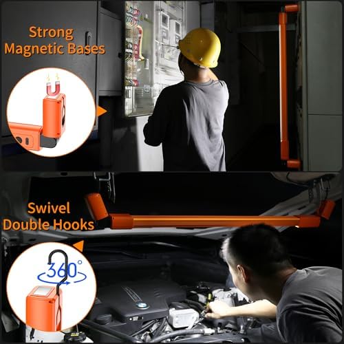 YiaMia LED Work Light, Rechargeable Underhood Work Light, Hood Light Bar with Magnetic and Hooks, Cordless Bright Work Lamp for Car Repairing Garage Workshop