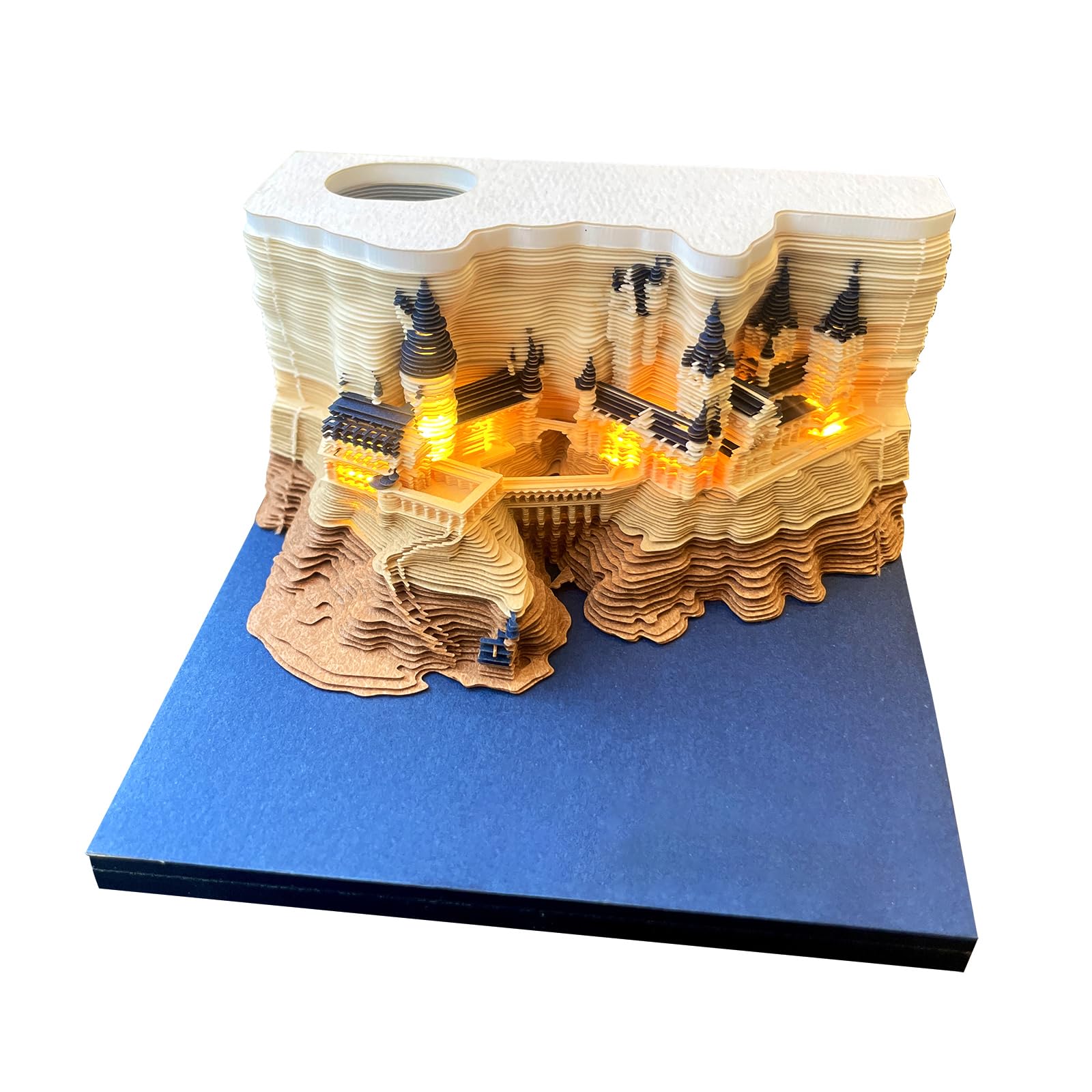 3D memo Pads Paper Art with Light, Castle Stick Notes Convenience Stickers Papers Card Craft, Original DIY Artsy Pads Post Notes Notepad