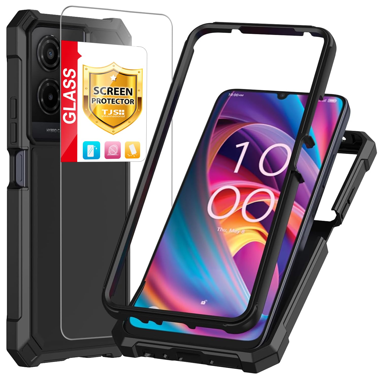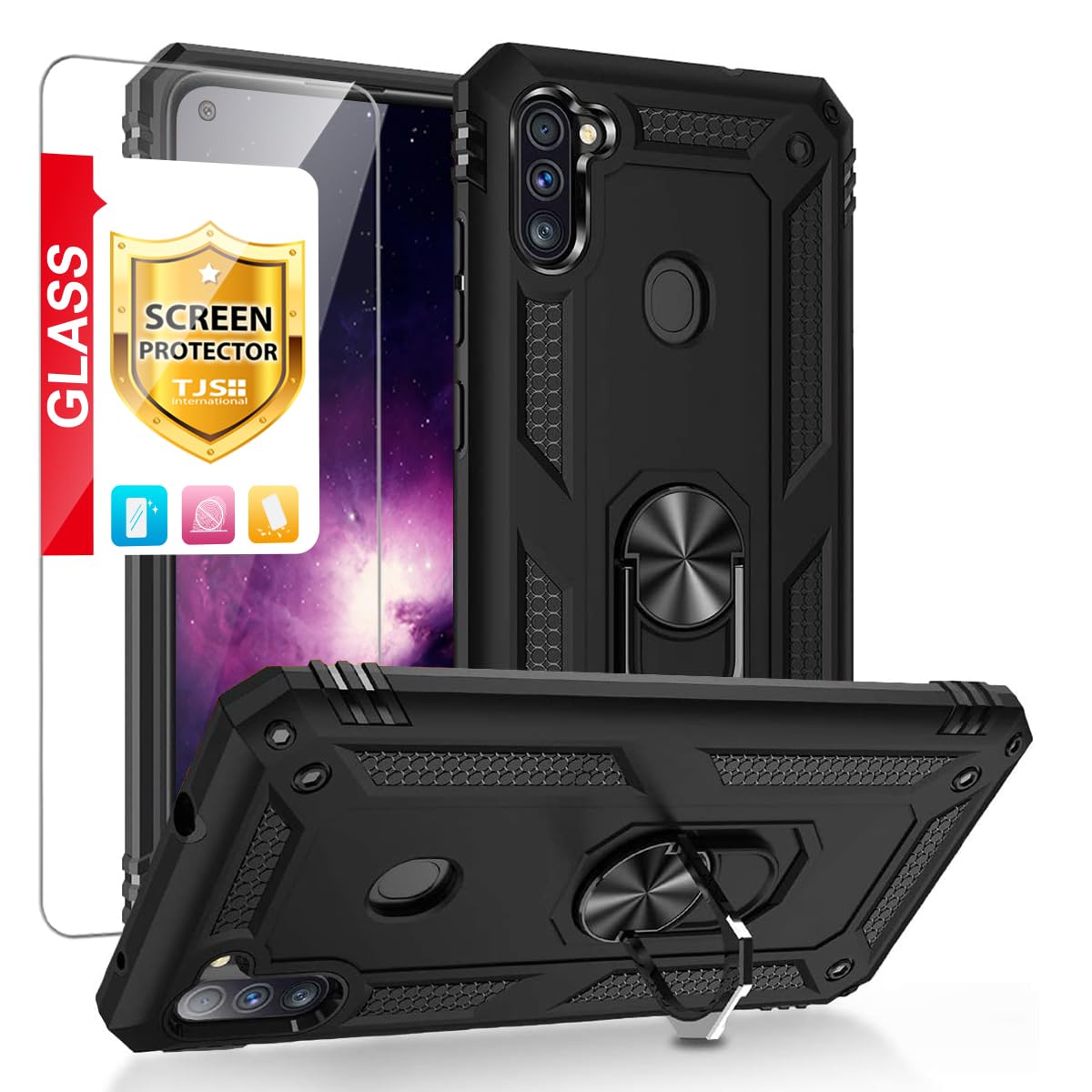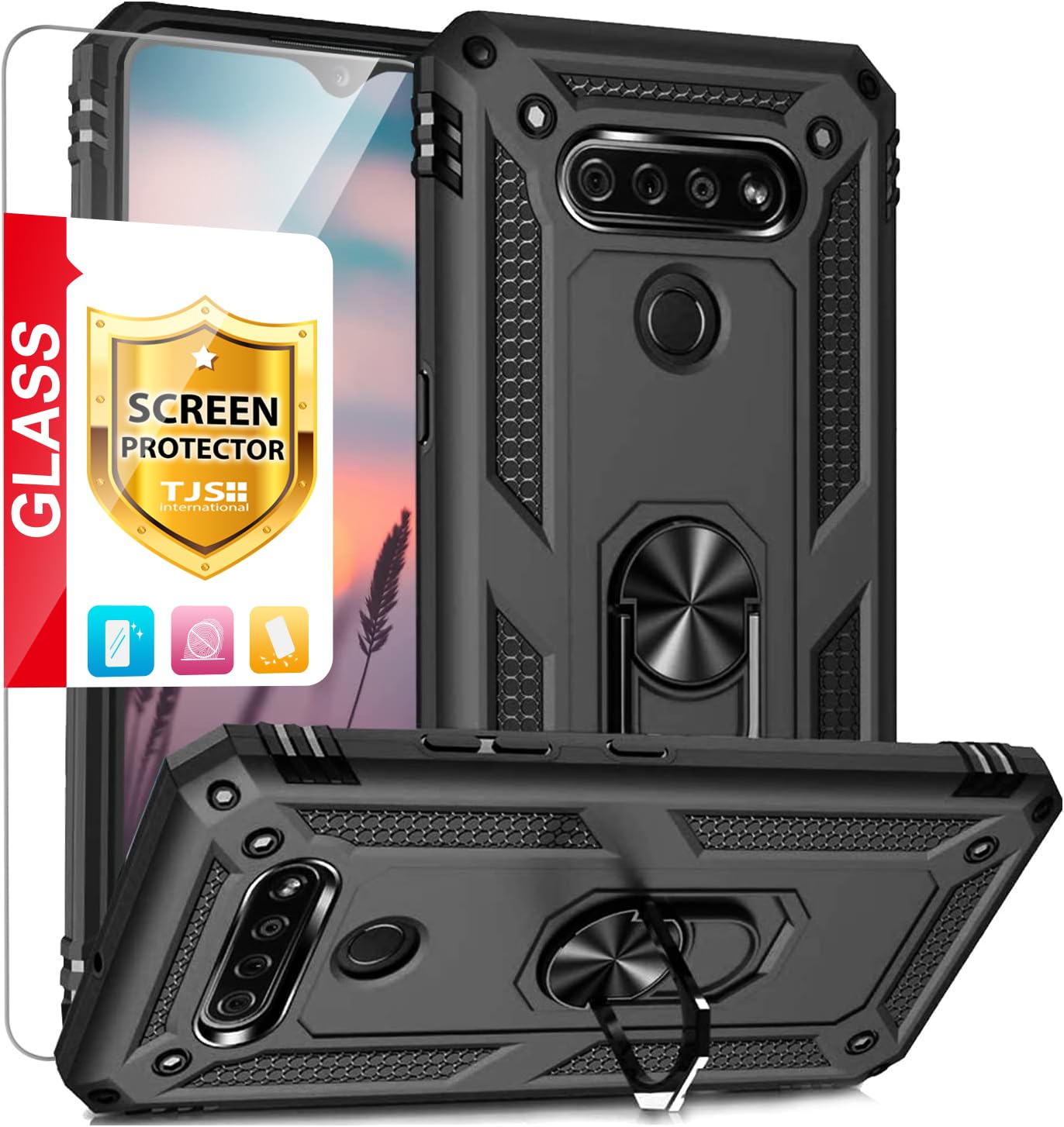 TJS Compatible for Schok Volt SV55 SV55216 Case, with Tempered Glass Screen Protector, Metal Ring Magnetic Support Kickstand Heavy Duty Drop Protection Cover Phone Case (Black)