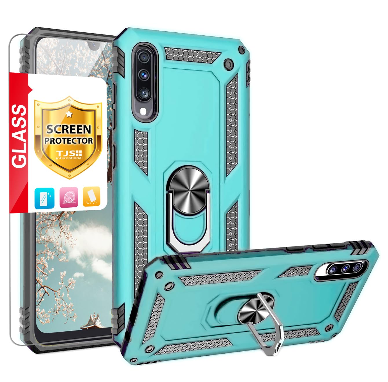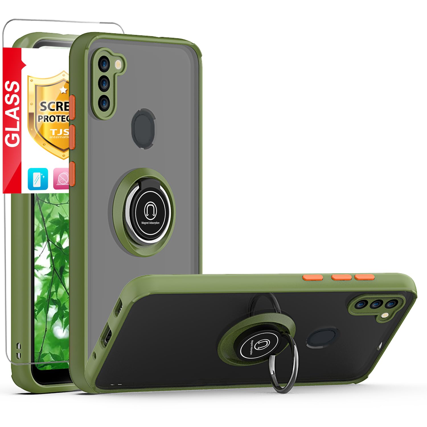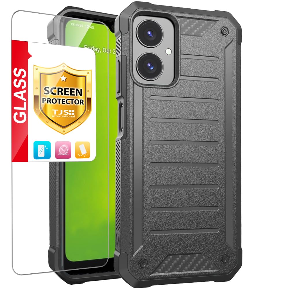 TJS Compatible for Schok Volt SV55 SV55216 Case, with Tempered Glass Screen Protector, Metal Ring Magnetic Support Kickstand Heavy Duty Drop Protection Cover Phone Case (Black)