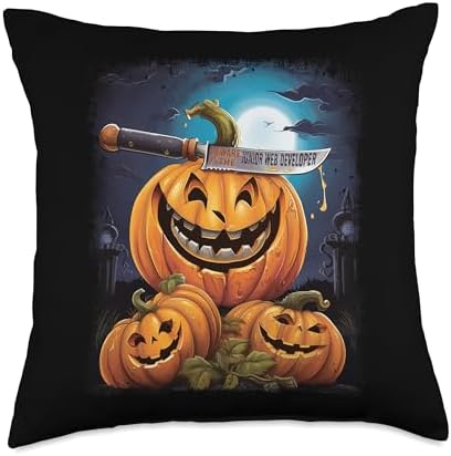 JUNIOR WEB DEVELOPER Gifts Junior Web Developer Funny Halloween Fun Pun Spooky Throw Pillow, 18x18, Multicolor