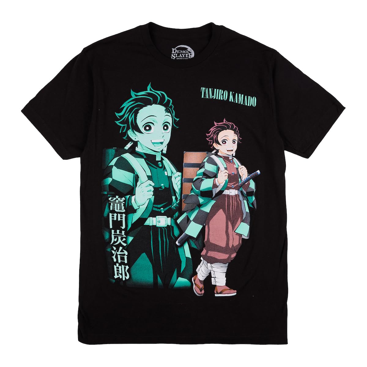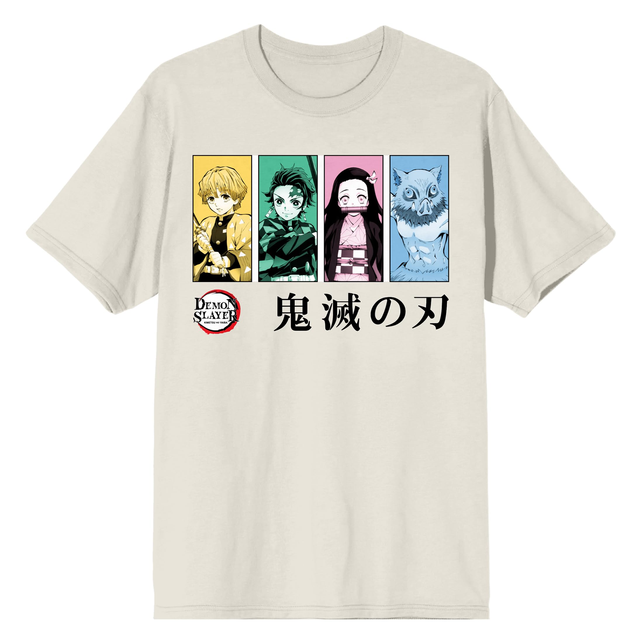 Demon Slayer Nezuko Repeat Text Crew Neck Short Sleeve Men's Black T-Shirt