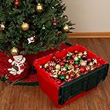 DURABLE STORAGE TOTES: The Akro-Mils 12 Gallon KeepBox is made from industrial-grade plastic; These storage bins withstand heavy use and the textured bottom ensures a no-slip grip, preventing unwanted movement during storage or transport STORAGE BINS WITH LIDS ATTACHED: The storage containers feature hinged lids to keep your items safe and secure and eliminate the need to search for lost lids; Steel hinge pins provide strength and durability; Padlock eyes on the lids accommodate zip ties CHRISTMAS DECORATION STORAGE: The red and green colors help distinguish these storage containers to use for holiday items like Christmas decorations, craft supplies, holiday seasonal clothing, and more STACKING AND NESTING: Stacks with lids closed and nests with lids open, adding to storage efficiency; Handles are molded into the sides to make them easy to carry; These storage totes are a reliable choice for moving, shipping, or as a truck bed organizer DIMENSIONS: With dimensions of 21.5-Inch x 15.25-Inch x 12.5-Inch, these large storage bins are perfect for organizing a variety of items; Proudly made in the USA, this storage tote is versatile for all activities