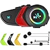 Altavoces para casco de motocicleta FEYA, auriculares de casco con alta duración de batería, control de música con contestación automática/llamada IPX6, ruido inteligente/despertar Siri, 2 tipos diferentes de micrófono - Compatible con todos los cascos