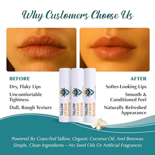 - DEEPLY NOURISHING LIP CARE – Proudly made in the USA, this beef tallow lip balm is enriched with vitamins A, D, E, and K to help nourish and rejuvenate chapped, dry lips. The moisturizing tallow formula supports soft, healthy-looking lips with every use.