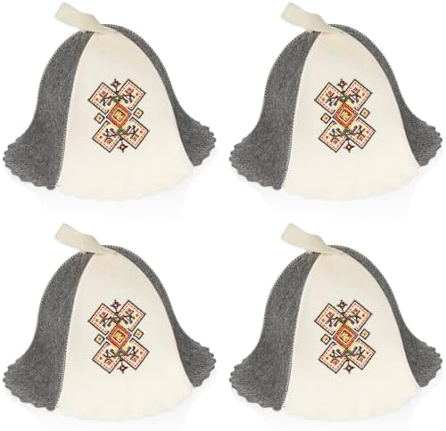 Cozypower 4 Pcs Sauna Hat Banya Hat Sauna Accessories Ukrainian Ornament Embroidered Wool Cap for Women and Men Bathhouse Accessory Gifts