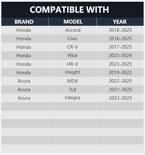 - Suitable Models: Compatible with Honda Accord 2018-2025, Civic 2016- 2025, CRV 2017-2025, Pilot 2023-2024, HRV 2023-2025, Insight 2019-2022; Acura MDX 2022-2025, TLX 2021-2025, Integra 2023-2025