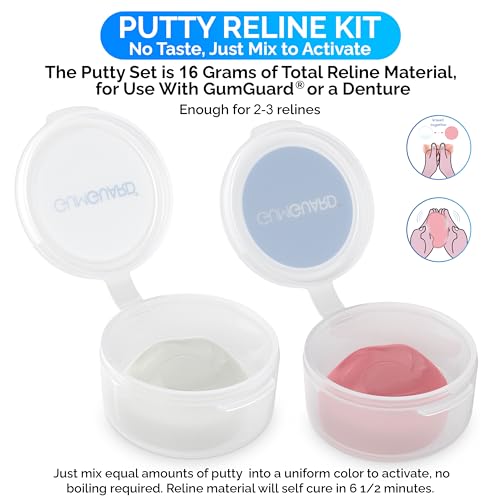 GumGuard Denture Putty Pack Reline Set - Versatile, Fast Self-Curing - for Custom Fit & Comfort in Dentures, with Multiple Applications & Watertight Seal 2 Pack
