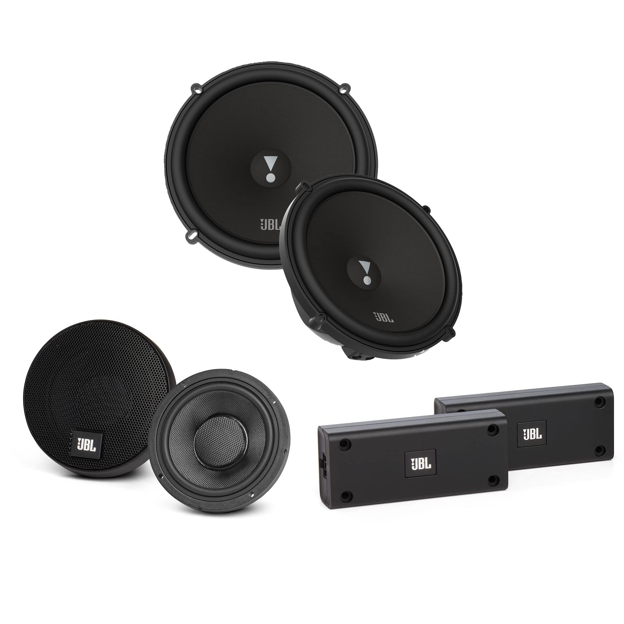This JBL car audio speaker system includes two 6x9-inch woofers with polypropylene cones and two midrange tweeters delivering rich, powerful sound, without grills for a sleek custom installed look.