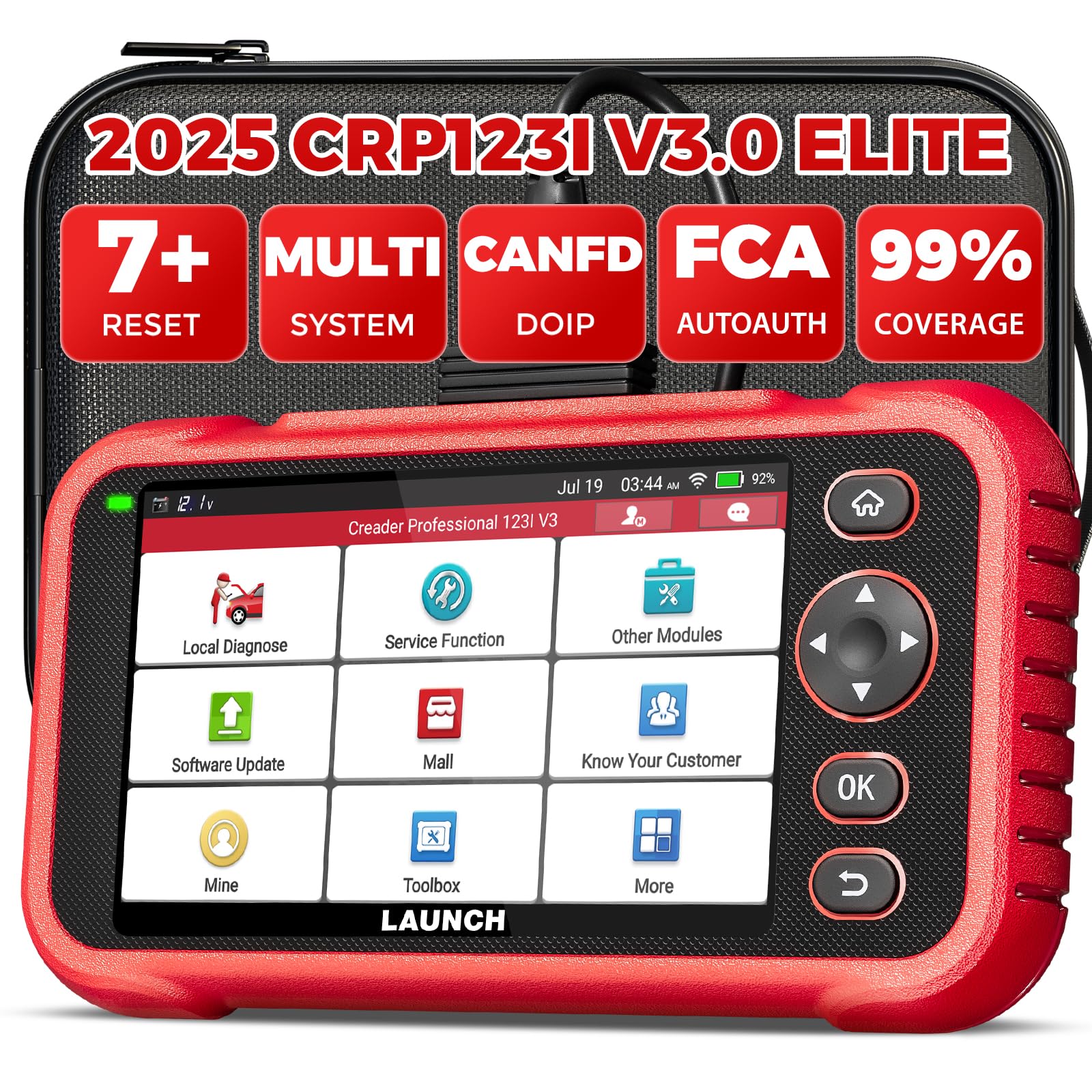- 【2025 Top Professional Car Scanner Diagnostic for All Cars】LAUNCH X431 PRO V+ obd2 scanner add more functions,No Extra Software Fee; Newly Added CANFD Connector; VAG Guided Function; Supports AutoAuth for FCA SGW; Online Coding; Nox Sensor Reset; Setting & Changeover (adblue reset, unlock the engine after a collision, cancel ABS driving test, and more) for Benz; Modification for BMW; Flash Hidden Functions; Power Balance; Customization; Parameterization