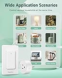 【Wireless Wall Switch】HAPYTHDA remote control outlet can be controlled wirelessly without wiring, getting rid of the traditional complicated wiring method and easily adding a replacement switch anywhere. Keep a good and safe appearance without any annoying cables and make your home more beautiful. 【300FT RF Range Control】The wireless light switch can work through doors and walls without interfering with other electronics. You can control the switch of sockets from anywhere in your home, making your life more convenient and efficient 【Wall Switch Mounts Anywhere and Portable】The remote control socket is very easy to use and install. Comes with 2 pcs Adhesive strips, you can directly pasted on any wall for use. And you can also use the screw to install the remote outlet switch. The switch can also be removed from the panel and carried for use. It is very convenient for the elderly with limited mobility, pregnant women, and the disabled. 【Multiple Safety Protection】Electric Shock-Proof can better protect your children's safety. Anti-surge 3000V and Zero crossing trigger can better protect and extend the life of your eletrical applicances. It has passed FCC, ROHS and CE certification and is worthy of your trust. 【High Quality and Durable】Wireless remote control outlet is made of fireproof PC material and Anti-UV, which can be effectively flame retardant and prevent switch from fading.Service life is up to 5 years or more! Any questions about the HAPYTHDA remote outlet switch, please contact us directly. We will offer you satisfactory after-sales support.