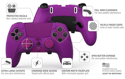 Foamy Lizard Eclipse PS5 Edge Controller Skin Combo Set | Dock Compatible, Protector Decals, Anti-Slip Soft Gel Silicone Cover, Faceplate Shell & Thumb Grips for PlayStation 5 DualSense Edge (Purple)