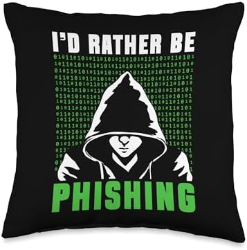 Cyber Security Software Hackers Programmer Code I'd Rather Be Phishing Hack Hacker Computer Throw Pillow, 16x16, Multicolor
