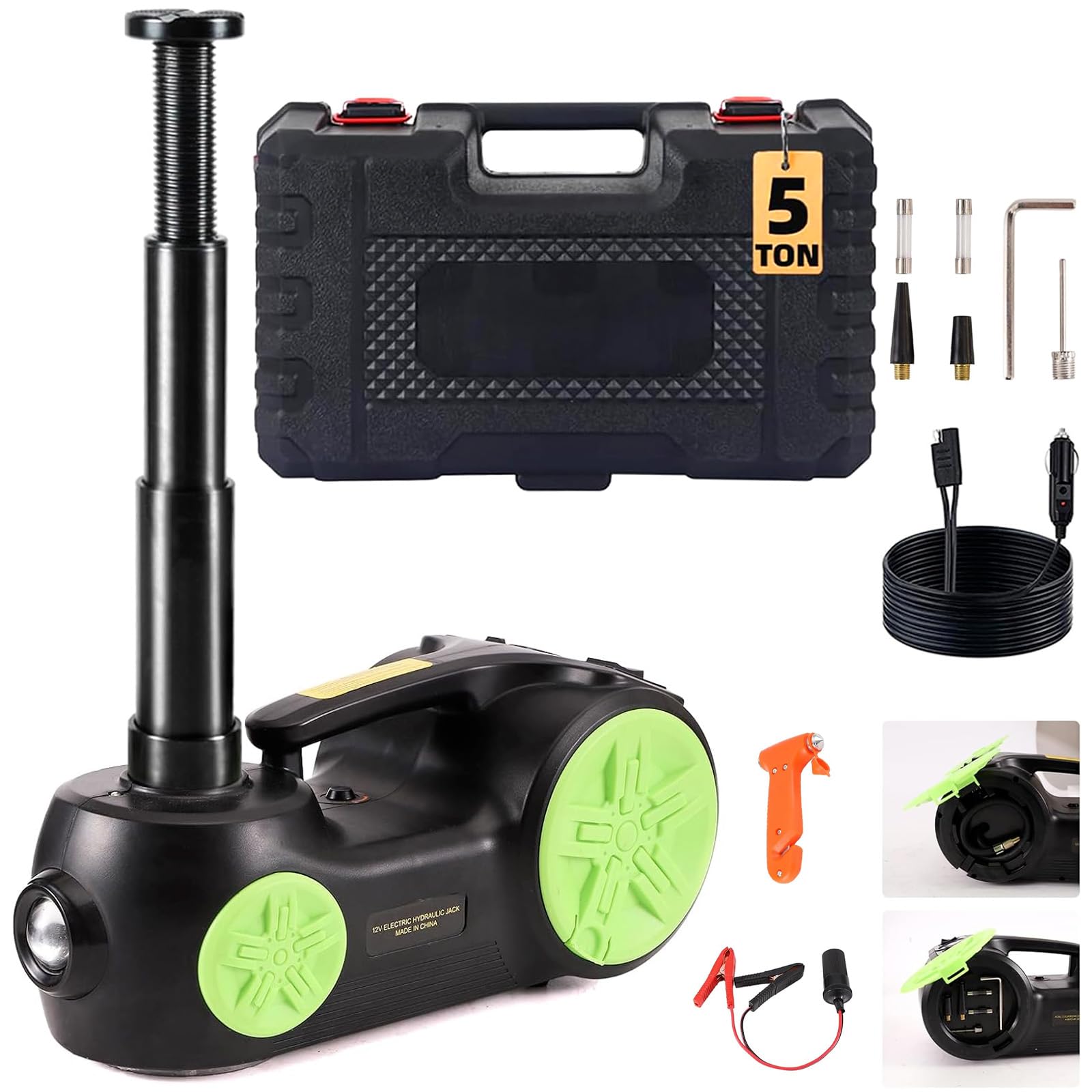 EFFIROSO Upgrade LED Light Electric Car Jack 5 Ton12V Hydraulic Jack Lift 5.9-20.8 Inch for SUV MPV Sedan Change Tires Garage Repair 11000 lbs