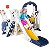 Arlopu 7 in 1 Toddler Slide and Swing Set, Kids Climber Playset with Ball & Hoop, Telescope, Suction Cup Reinforced Base, Baby Indoor Outdoor Playground (Dark Blue)