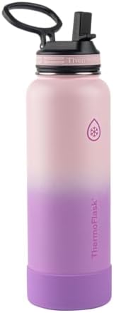 Termogarrafas Thermoflask de 40 oz de acero inoxidable con doble pared y aislamiento al vacío, botellas de agua con pajita y tapas con boquilla, paquete de 2, negro/rosa púrpura