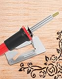 Versatile Woodburning Tool: The Creative Tool is a comprehensive set that includes 9 different points, allowing you to create intricate designs on various surfaces such as wood, leather, and more. Variable Temperature Control: With adjustable temperature control, you can easily customize the heat intensity to suit your project needs, ensuring precision and control while preventing overheating. Comfortable and Convenient: The tool features a comfortable grip, reducing hand fatigue during long crafting sessions. It also includes a convenient stand that protects your worksurface from heat damage when not in use. Easy Maintenance and Longevity: The tool's 4-5 minute heating time ensures quick and efficient operation. Removal of points is simple, using pliers when the tool is cooled down.