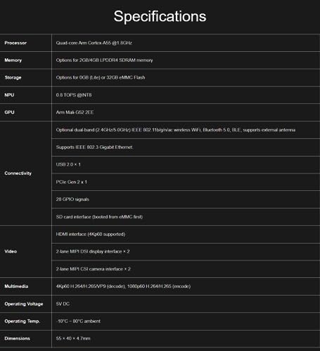 4GB RAM +32GB(Lite) eMMC Flash With Wireless