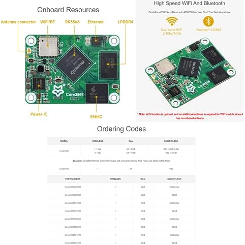 Core3566 Module, Rockchip RK3566 Quad-Core Processor, Compatible with Raspberry Pi CM4, 4GB RAM, 32GB eMMC Flash (Core3566104032)