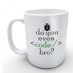 GOOD GIFT IDEA: For a programmer who is so immersed in the computer all day, nice hot coffee in a funny mug will jumpstart their day. Do you want to surprise your boyfriend, dad, husband, brother, uncle, or friend who is a programmer on their special day? Or want to show appreciation to your best programmer ever? Show appreciation for their hard work with this humorous coffee mug with the quote "Do you even code bro? " and make them laugh real hard and make them feel special. FUNNY GIFTS CHOICE: This unique funny mug will catch the attention of anyone who you want to give the gift for.It can be used as birthday or new year christmas and other occasions. The mug are made of high quanlity and printed on both sides. Mesured 3.23 inch wide and 3.74 inch length. EXQUISITE PACKAGING DESIGN. Each mug is carefully packaged in an unique designd gift box. Don't bother preparing for extra gift wrapping. You can give presents right away. UNIQUE AND ELEGANT STYLE: The simple but stylish outlook of the cute mugs with the loving text printed on both sides, is going to make them the new gossip topic of your visitors. The elegant style of the coffee mugs is going to make them the absolute focal point of your gatherings. NOT SAFE FOR DISHWASHER. Handwash Only. This 11 Ounce white ceramic coffee mug also makes a great tea cup with its large, easy-grip handle.