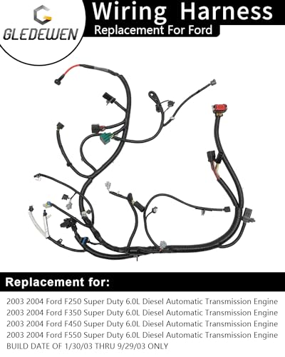 Engine Wiring Harness 6.0 L, Compatible with 2003 2004 Ford F250 F350 F450 F550 Super Duty Diesel Engine, 3C3Z-12B637-BA, 3C3Z12B637BA, Build Date of 1/30/03 Thru 9/29/03 Only, Standalone Wire Harness