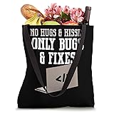 Show off your love for coding with this humorous design, featuring the quirky 'No Only Bugs & Fixes' phrase. Perfect for proud coders, programmers, and IT software enthusiasts who live and breathe coding. Whether you're a job developer, software programmer, or just passionate about coding, this witty design is sure to resonate. Funny No Only Bugs & Fixes design. 16” x 16” bag with two 14” long and 1” wide black cotton webbing strap handles. Made of a lightweight, spun polyester canvas-like fabric. All seams and stress points are double-stitched for durability, and the reinforced bottom flattens to fit more items and hold larger objects. Spot clean/dry clean only.