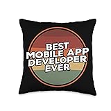 Mobile App Developer Gifts Vintage Best Mobile App Developer Ever Throw Pillow, 16x16, Multicolor