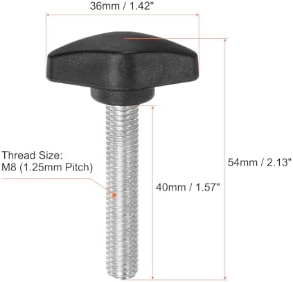 - Size - Standard Thread Size: M8 (1.25mm Pitch); Thread Length: 40mm / 1.57"; Tee Wing Head Width: 36mm / 1.42"; Total Length: 54mm / 2.13"; Knob Style: Tee; Color: Black ( The threads are neat and clear, the force is even and deep, not easy to slip, and there are no burrs.)