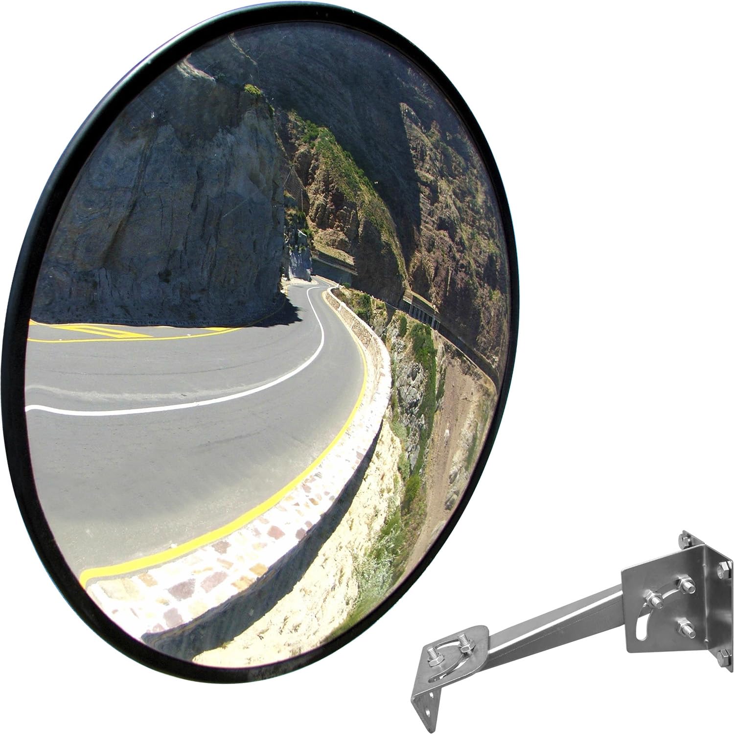 24" Unbreakable PC Convex Mirror with Adjustable Bracket - Vision up to 35 FT, Ideal for Driveway, Large Road, Garage Blindspots & Traffic Safety