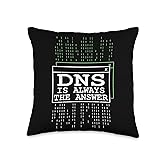 System Admin Gift & System Engineering Accessories Network Admin, DNS is The Answer, Sysadmin & IT Programmer Throw Pillow, 16x16, Multicolor