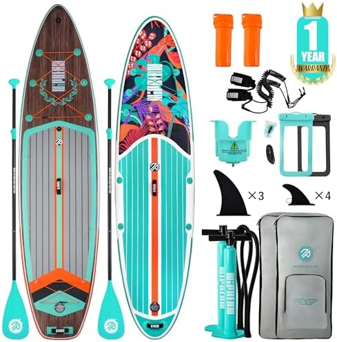 - 【Versatility for Various Scenarios】-The paddleboards are equipped with two multifunctional mounts, for attaching accessories like camera mounts, cup holders, and fishing rod holders. The nose and tail of the board feature bungee cords, offering customization options to suit different preferences. This inflatable sup can be used in various water conditions, such as the ocean, lake, and river, and is versatile enough for yoga, surfing, exploring, traveling, and fishing.