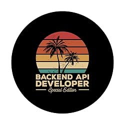 Backend API Developer Special Edition For A Backend API Developer is perfect for developers who love Backend API Development. Adhesive backing attaches the PopGrip to your case or device. Will not stick to silicone, leather, waterproof, or highly textured cases. Works best with smooth, hard, plastic cases. Not compatible with wireless charging Printed top is swappable with other compatible PopGrip models. Just press flat, turn 90 degrees until you hear a click and remove to swap.