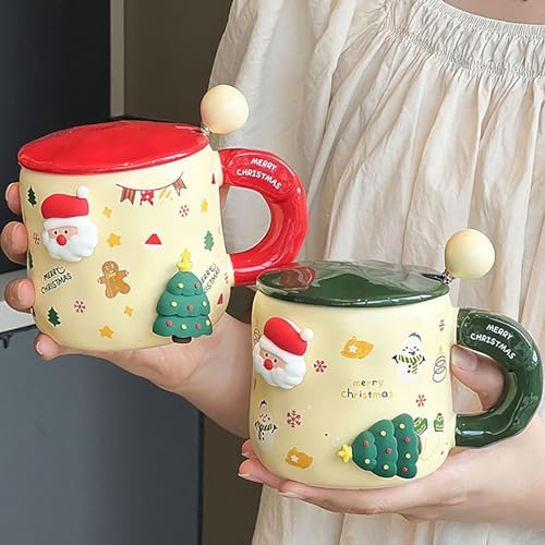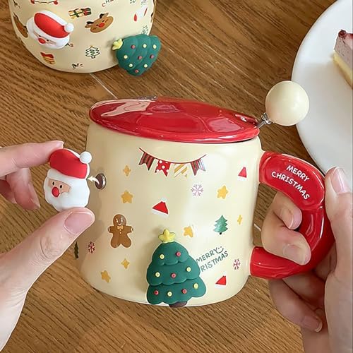 Christmas Mug, 450ml Ceramic Mug with Lid, Christmas Mug with Spoon, Cute Coffee Mugs Ceramic, Christmas Gifts (Reindeer)
