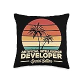 Artificial Intelligence Developer Gifts Vintage Artificial Intelligence Developer Throw Pillow, 16x16, Multicolor