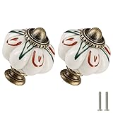 Zernmiarder Ivory Pumpkin Knobs 2 Pack Ceramic Cabinet Knobs Vintage Drawer Pulls - Antique Dresser Pulls with Screws - Flowers & Aloe Vera