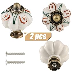 *Purchase Guiding* 2 x Hand Painted Ceramic Pumpkin Knobs with mounting set. Pattern: Flowers & Aloe Vera. Knob size: 1-3/8" x 1-1/2"(Dia.* L). Mounting hole depth is 0.2" / 5mm. 2 x Regular Screws 1" / 25mm. *Vintage Appearance* Elegant appearance, antique design and exquisite craftsmanship make it not only beautiful and stylish when collocated with modern furniture, but also add a classic charm to your home. *Durable Quality* The drawer knob is made of ceramic, which is sturdy, durable, and easy to maintain. It is an economical and practical home decoration, and easy installation is a good choice for DIY projects. *Wide Applicability* The pumpkin shape and simple design is suitable for many kinds of furniture such as kitchen cabinets, drawers, cabinets, doors, drawers, wardrobes, home dressers, offices and many other uses. *Comfortable Purchase* If you have any questions about our products, please contact us by email in Amazon, in order to provide our customers with a comfortable purchasing experience, we will reply you within 24 hours.