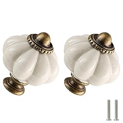 - Features: 1.Elegant appearance, antique design and exquisite craftsmanship make it not only beautiful and stylish when collocated with modern furniture, but also add a classic charm to your home. 2.The drawer knob is made of ceramic, which is sturdy, durable, and easy to maintain. It is an economical and practical home decoration, and easy installation is a good choice for DIY projects. 3.The pumpkin shape and simple design is suitable for many kinds of furniture such as kitchen cabinets, drawers, cabinets, doors, drawers, wardrobes, home dressers, offices and many other uses. Specification: Color: Antique White Material: Ceramic Knob Size: 1-3/8" x 1-1/2"(Dia.* L) Regular Screws : 1" / 25mm Package Included: 6 x Pumpkin Knobs 6 x Regular Screws Warm Tips: 1.As the size is measured by hand, please allow 1-2mm difference between the actual size and the hand measured size. The pictures of the product are as close to the real thing as possible, but the colors are slightly different due to equipment, lighting and display.