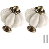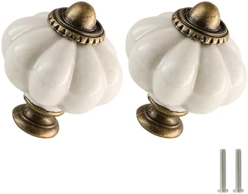 Antique White Pumpkin Knobs 2 Pack Ceramic Cabinet Knobs Vintage Drawer Pulls - Antique Dresser Pulls with Screws for Closet Drawer Cupboard Cabinet and DIY Home Project