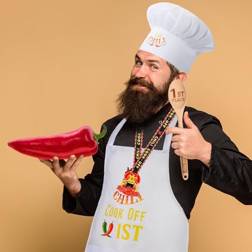 - Reliable Material: experience the longevity, comfort from our chili cook off supplies; Made from quality materials, our medals are crafted from long lasting metal, the aprons and chef hat are woven with safe polyester to withstand the rigors of cooking, and our wooden spoon adds an authentic touch to every cooking experience