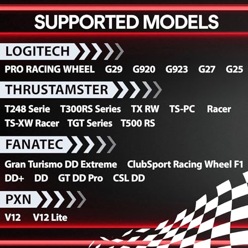 - Universal Compatibility for Pro & Casual Racers: This racing simulator cockpit is compatible with Logitech (G PRO/G29/G920/G923), Thrustmaster (T248/T300RS/T-GT/TS-PC/TS-XW Racer), Fanatec (CSL DD/GT DD Pro/ClubSport DD/DD+), and PXN V12. See more models by contacting customer support