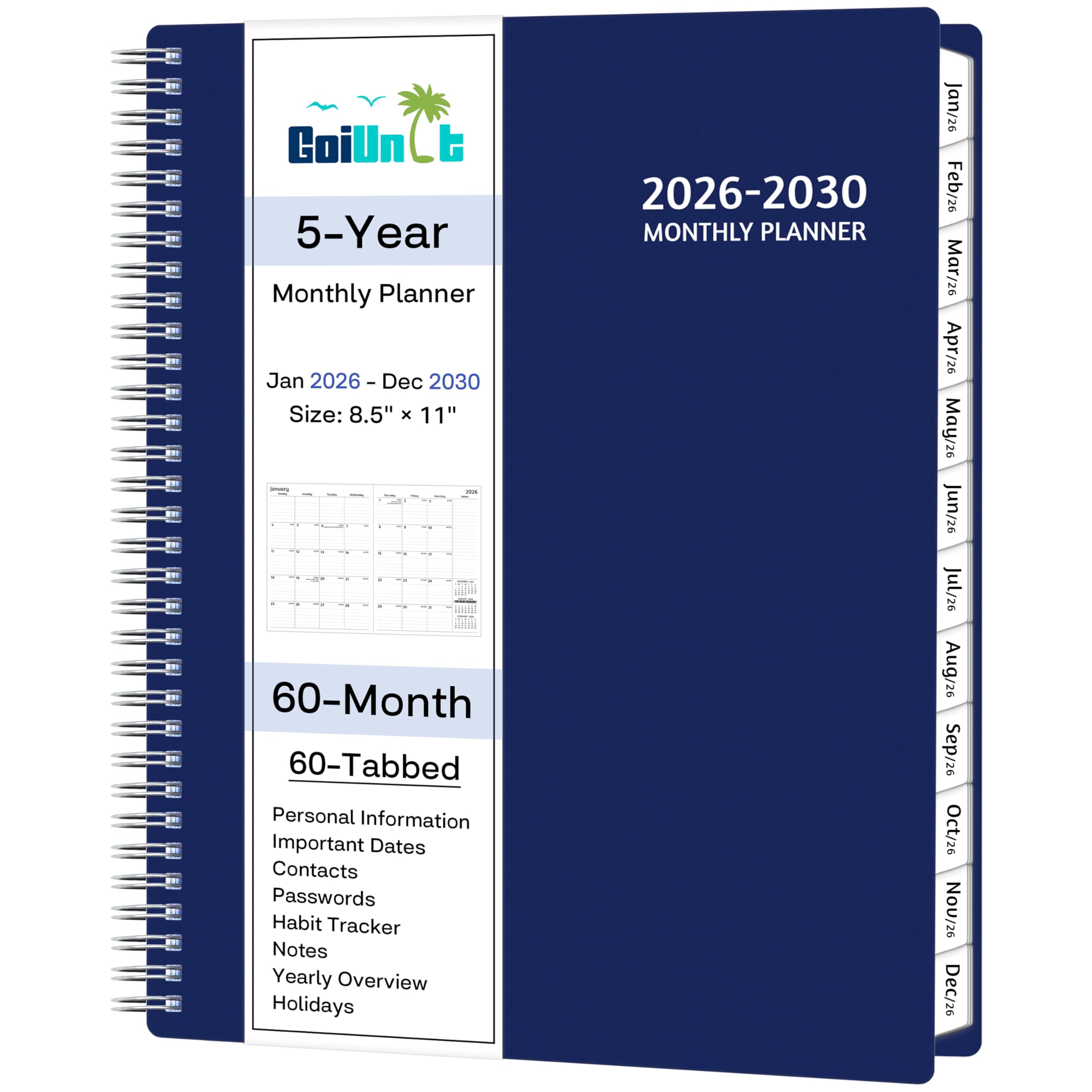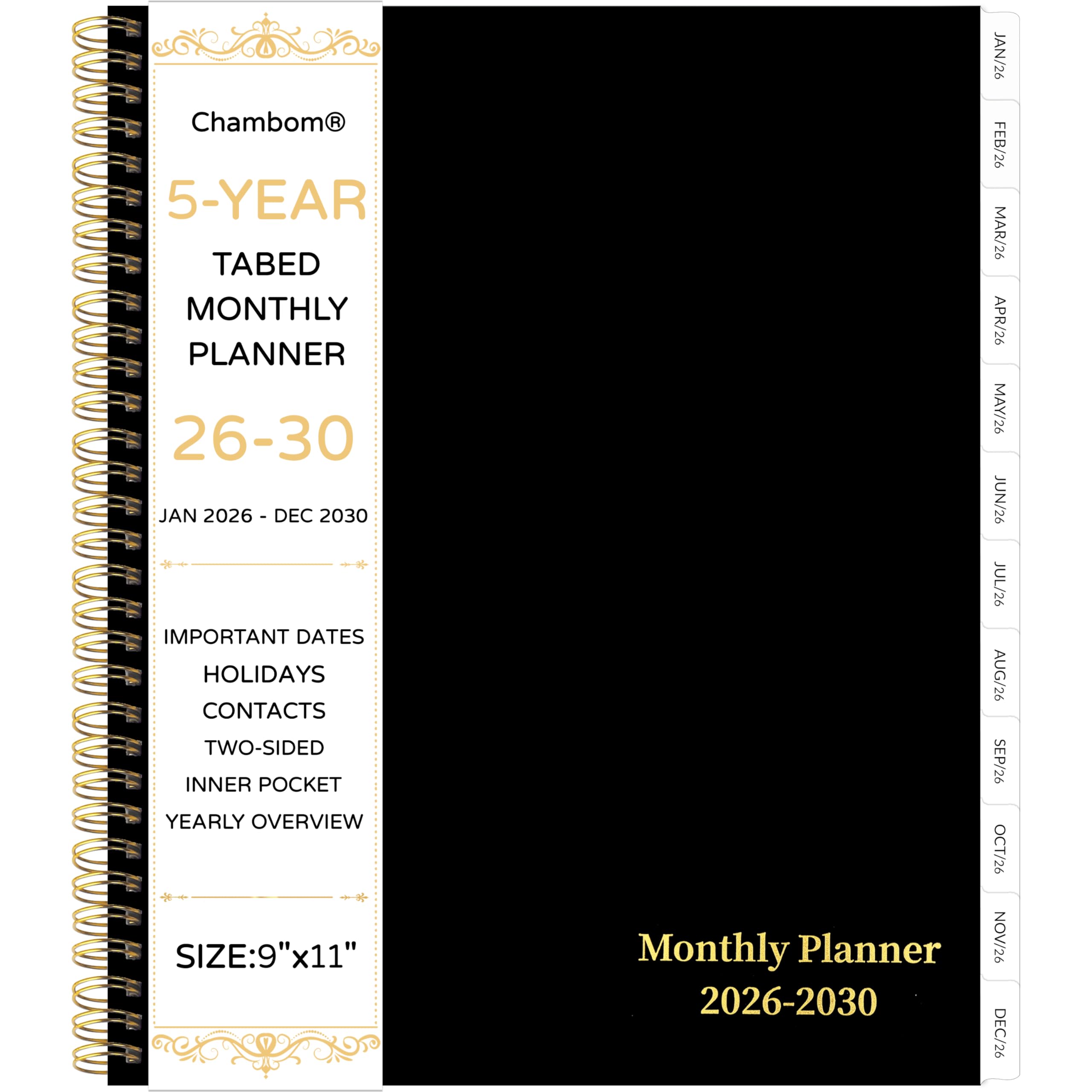 2026-2030 Monthly Planner/Calendar - 5 Year Monthly Planner 2026-2030 from Jan. 2026 - Dec. 2030, 9" x 11", 60 Months Calendar, Large 5 Year Planning with Tabs, Double-Side Pocket, Holidays