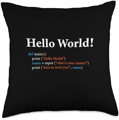 Web Developer Gifts Store Python Hello World Computer Programming Language Throw Pillow, 18x18, Multicolor