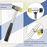 Ring sizer measuring tool with wood mandrel rubber mallet,metal mandrel marked with US UK Size,ring size gauge with US size 1-13 with half size,ring sizer set is good value for quickly figuring out the sizes of rings and fingers. Ring sizer measurement tools can help you easily get the accurate ring size of your lover, families, and friends.Recommended this ring sizer and shaper tool kit to anyone that needs to check ring sizes or round out bent rings, checking your finger sizes and resized a ring easily. Wood mandrel and rubber hammer can be applied to fix or adjust rings or other jewelry, rubber head will not leave marks on the jewelry or damage your jewelry. Ring sizing and repairing tools set is good value for anyone who is interested in jewelry repair, making or reshaping metal rings, or making rings.Essential ring tools kit for professional and beginner. Package Included: 1 * Ring size mandrel, 1* Wood mandrel, 1 * Rubber jewelry mallet, 1 * Metal ring gauge set, 2 * Ring size adjusters, 1 * Black ring size measurer, 2 * Jewelry cleaning clothes.