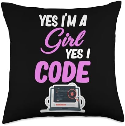 Programmer Girl Computer Debugging Coder Geek Girl Yes I Code Programmer Computer Debugging Throw Pillow, 18x18, Multicolor