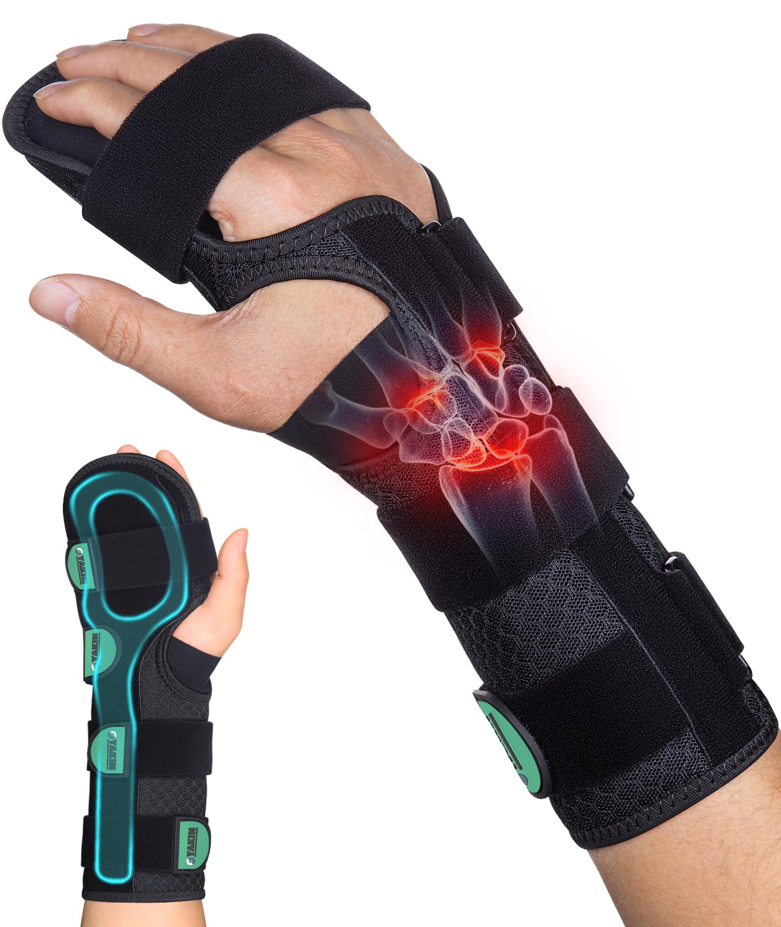 - 【5 Velcro Straps Adjustable,Suitable for All-Day Wear】:This Hand Splint Support is equipped with 5 adjustable velcro straps, which are used to fix your fingers, palm, wrist, arm and thumb respectively. The tightness can be adjusted according to your needs, immobilized distressed hand and wrist joints, keep hand and wrist from moving/bending during the night. Also very useful for office workers who use the mouse all day and fingers & wrist have sore. It's ideal for day and night hand support!