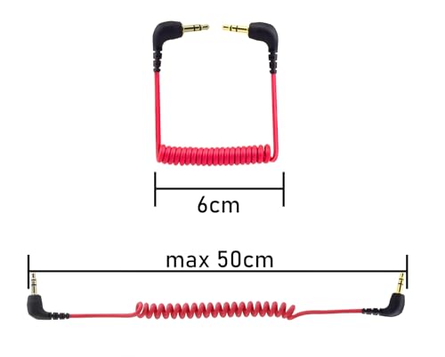 for DJI Mic Camera Audio Cable 3.5mm TRS, for DJI Mic 2 / Rode Wireless GO II/ME/PRO Microphone Dual 3.5mm TRS Male Coiled Right Angle Audio Cord Adapter