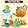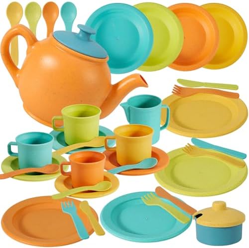 - 35 PCS 2 in 1 Toy Kitchen Accessories: Kitchen dinnerware - 4 forks, 4 spoons, 4 knives, 4 bowls, 4 plates. Toddler tea party set - 1 teapots, 4 tea cups, 1 sugar bowl, 1 milk cups, 4 tea spoon, 4 tea trays. Two types of kitchen toys are available for everyday use and parties!